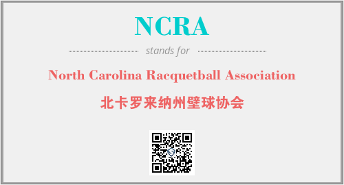 英文缩略词“NCRA”经常作为“North Carolina Racquetball Association”的英文缩写来使用,中文表示:“北卡罗来纳州壁球协会”。本文将详细介绍英文缩写词NCRA所代表英文单词,其对应的中文拼音、详细解释以及在英语中的流行度。此外,还有关于缩略词NCRA的分类、应用领域及相关应用示例等。