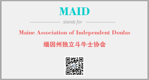 英文缩略词“MAID”经常作为“Maine Association of Independent Doulas”的英文缩写来使用,中文表示:“缅因州独立斗牛士协会”。本文将详细介绍英文缩写词MAID所代表英文单词,其对应的中文拼音、详细解释以及在英语中的流行度。此外,还有关于缩略词MAID的分类、应用领域及相关应用示例等。