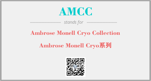 上述内容是“Ambrose Monell Cryo Collection”作为“AMCC”的缩写,解释为“Ambrose Monell Cryo系列”时的信息,以及英文缩略词AMCC所代表的英文单词,其对应的中文拼音、详细解释以及在英文中的流行度和相关分类、应用领域及应用示例等。