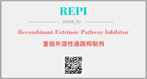 上述内容是“Recombinant Extrinsic Pathway Inhibitor”作为“REPI”的缩写,解释为“重组外源性通路抑制剂”时的信息,以及英文缩略词REPI所代表的英文单词,其对应的中文拼音、详细解释以及在英文中的流行度和相关分类、应用领域及应用示例等。