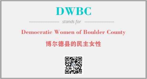 上述内容是“Democratic Women of Boulder County”作为“DWBC”的缩写,解释为“博尔德县的民主女性”时的信息,以及英文缩略词DWBC所代表的英文单词,其对应的中文拼音、详细解释以及在英文中的流行度和相关分类、应用领域及应用示例等。