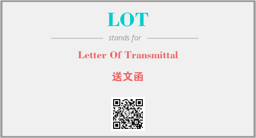 英文缩略词“LOT”经常作为“Letter Of Transmittal”的英文缩写来使用,中文表示:“送文函”。本文将详细介绍英文缩写词LOT所代表英文单词,其对应的中文拼音、详细解释以及在英语中的流行度。此外,还有关于缩略词LOT的分类、应用领域及相关应用示例等。