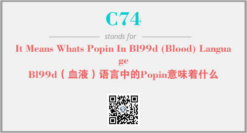 上述内容是“It Means Whats Popin In Bl99d (Blood) Language”作为“C74”的缩写,解释为“Bl99d(血液)语言中的Popin意味着什么”时的信息,以及英文缩略词C74所代表的英文单词,其对应的中文拼音、详细解释以及在英文中的流行度和相关分类、应用领域及应用示例等。