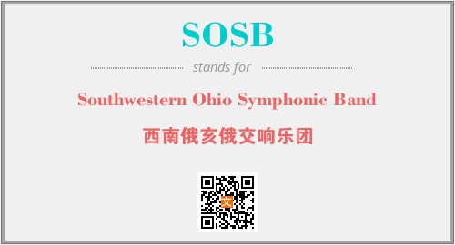 英文缩略词“SOSB”经常作为“Southwestern Ohio Symphonic Band”的英文缩写来使用,中文表示:“西南俄亥俄交响乐团”。本文将详细介绍英文缩写词SOSB所代表英文单词,其对应的中文拼音、详细解释以及在英语中的流行度。此外,还有关于缩略词SOSB的分类、应用领域及相关应用示例等。