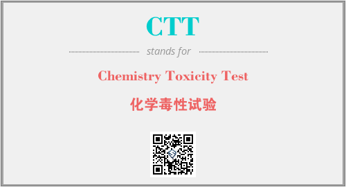 上述内容是“Chemistry Toxicity Test”作为“CTT”的缩写,解释为“化学毒性试验”时的信息,以及英文缩略词CTT所代表的英文单词,其对应的中文拼音、详细解释以及在英文中的流行度和相关分类、应用领域及应用示例等。
