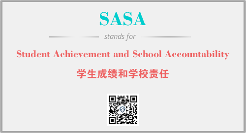 上述内容是“Student Achievement and School Accountability”作为“SASA”的缩写,解释为“学生成绩和学校责任”时的信息,以及英文缩略词SASA所代表的英文单词,其对应的中文拼音、详细解释以及在英文中的流行度和相关分类、应用领域及应用示例等。