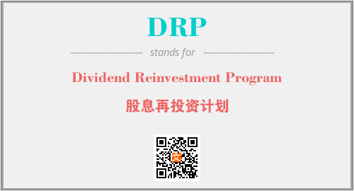 英文缩略词“DRP”经常作为“Dividend Reinvestment Program”的英文缩写来使用,中文表示:“股息再投资计划”。本文将详细介绍英文缩写词DRP所代表英文单词,其对应的中文拼音、详细解释以及在英语中的流行度。此外,还有关于缩略词DRP的分类、应用领域及相关应用示例等。