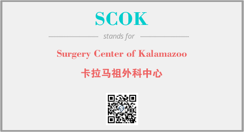 上述内容是“Surgery Center of Kalamazoo”作为“SCOK”的缩写,解释为“卡拉马祖外科中心”时的信息,以及英文缩略词SCOK所代表的英文单词,其对应的中文拼音、详细解释以及在英文中的流行度和相关分类、应用领域及应用示例等。