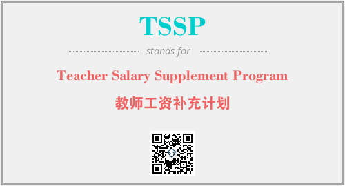 英文缩略词“TSSP”经常作为“Teacher Salary Supplement Program”的英文缩写来使用,中文表示:“教师工资补充计划”。本文将详细介绍英文缩写词TSSP所代表英文单词,其对应的中文拼音、详细解释以及在英语中的流行度。此外,还有关于缩略词TSSP的分类、应用领域及相关应用示例等。