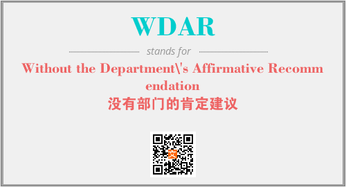 以上为Without the Department\'s Affirmative Recommendation英文缩略词WDAR的中文解释,以及该英文缩写在英语的流行度、分类和应用领域方面的信息。