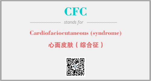 英文缩略词“CFC”经常作为“Cardiofaciocutaneous (syndrome)”的英文缩写来使用,中文表示:“心面皮肤(综合征)”。本文将详细介绍英文缩写词CFC所代表英文单词,其对应的中文拼音、详细解释以及在英语中的流行度。此外,还有关于缩略词CFC的分类、应用领域及相关应用示例等。