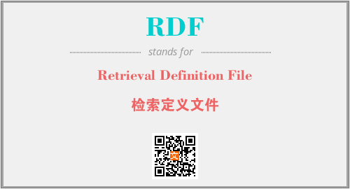英文缩略词“RDF”经常作为“Retrieval Definition File”的英文缩写来使用,中文表示:“检索定义文件”。本文将详细介绍英文缩写词RDF所代表英文单词,其对应的中文拼音、详细解释以及在英语中的流行度。此外,还有关于缩略词RDF的分类、应用领域及相关应用示例等。