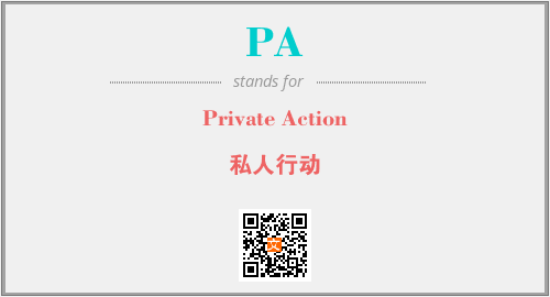 上述内容是“Private Action”作为“PA”的缩写,解释为“私人行动”时的信息,以及英文缩略词PA所代表的英文单词,其对应的中文拼音、详细解释以及在英文中的流行度和相关分类、应用领域及应用示例等。