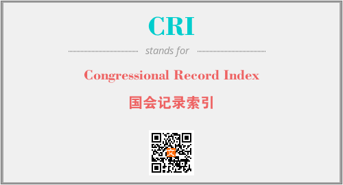 英文缩略词“CRI”经常作为“Congressional Record Index”的英文缩写来使用,中文表示:“国会记录索引”。本文将详细介绍英文缩写词CRI所代表英文单词,其对应的中文拼音、详细解释以及在英语中的流行度。此外,还有关于缩略词CRI的分类、应用领域及相关应用示例等。