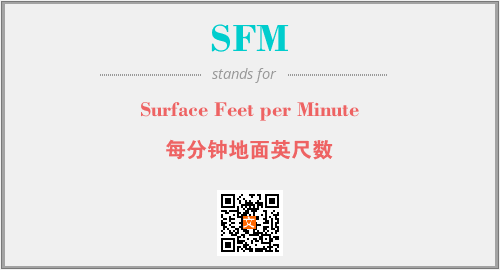 英文缩略词“SFM”经常作为“Surface Feet per Minute”的英文缩写来使用,中文表示:“每分钟地面英尺数”。本文将详细介绍英文缩写词SFM所代表英文单词,其对应的中文拼音、详细解释以及在英语中的流行度。此外,还有关于缩略词SFM的分类、应用领域及相关应用示例等。