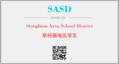 上述内容是“Stoughton Area School District”作为“SASD”的缩写,解释为“斯托顿地区学区”时的信息,以及英文缩略词SASD所代表的英文单词,其对应的中文拼音、详细解释以及在英文中的流行度和相关分类、应用领域及应用示例等。