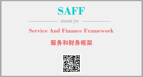 上述内容是“Service And Finance Framework”作为“SAFF”的缩写,解释为“服务和财务框架”时的信息,以及英文缩略词SAFF所代表的英文单词,其对应的中文拼音、详细解释以及在英文中的流行度和相关分类、应用领域及应用示例等。
