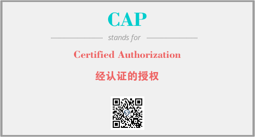 英文缩略词“CAP”经常作为“Certified Authorization”的英文缩写来使用,中文表示:“经认证的授权”。本文将详细介绍英文缩写词CAP所代表英文单词,其对应的中文拼音、详细解释以及在英语中的流行度。此外,还有关于缩略词CAP的分类、应用领域及相关应用示例等。