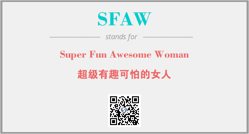 以上为Super Fun Awesome Woman英文缩略词SFAW的中文解释,以及该英文缩写在英语的流行度、分类和应用领域方面的信息。