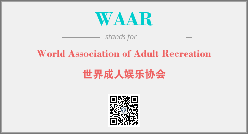 英文缩略词“WAAR”经常作为“World Association of Adult Recreation”的英文缩写来使用,中文表示:“世界成人娱乐协会”。本文将详细介绍英文缩写词WAAR所代表英文单词,其对应的中文拼音、详细解释以及在英语中的流行度。此外,还有关于缩略词WAAR的分类、应用领域及相关应用示例等。