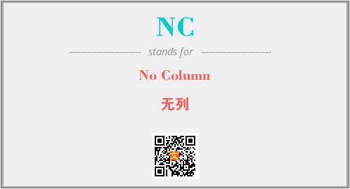 英文缩略词“NC”经常作为“No Column”的英文缩写来使用,中文表示:“无列”。本文将详细介绍英文缩写词NC所代表英文单词,其对应的中文拼音、详细解释以及在英语中的流行度。此外,还有关于缩略词NC的分类、应用领域及相关应用示例等。