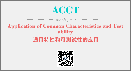 上述内容是“Application of Common Characteristics and Testability”作为“ACCT”的缩写,解释为“通用特性和可测试性的应用”时的信息,以及英文缩略词ACCT所代表的英文单词,其对应的中文拼音、详细解释以及在英文中的流行度和相关分类、应用领域及应用示例等。