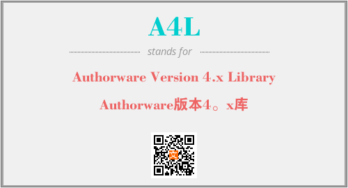 英文缩略词“A4L”经常作为“Authorware Version 4.x Library”的英文缩写来使用,中文表示:“Authorware版本4。x库”。本文将详细介绍英文缩写词A4L所代表英文单词,其对应的中文拼音、详细解释以及在英语中的流行度。此外,还有关于缩略词A4L的分类、应用领域及相关应用示例等。