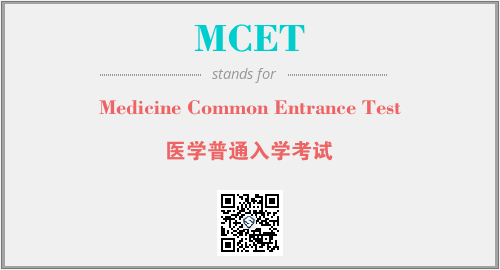 以上为Medicine Common Entrance Test英文缩略词MCET的中文解释,以及该英文缩写在英语的流行度、分类和应用领域方面的信息。