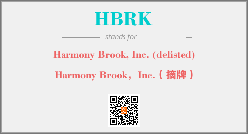 上述内容是“Harmony Brook, Inc. (delisted)”作为“HBRK”的缩写,解释为“Harmony Brook,Inc.(摘牌)”时的信息,以及英文缩略词HBRK所代表的英文单词,其对应的中文拼音、详细解释以及在英文中的流行度和相关分类、应用领域及应用示例等。