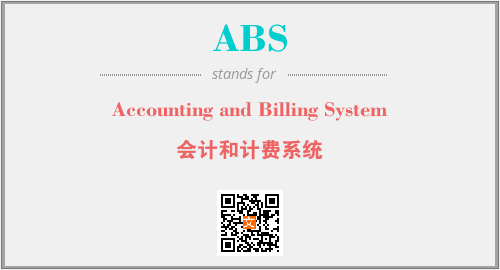 英文缩略词“ABS”经常作为“Accounting and Billing System”的英文缩写来使用,中文表示:“会计和计费系统”。本文将详细介绍英文缩写词ABS所代表英文单词,其对应的中文拼音、详细解释以及在英语中的流行度。此外,还有关于缩略词ABS的分类、应用领域及相关应用示例等。