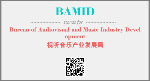 上述内容是“Bureau of Audiovisual and Music Industry Development”作为“BAMID”的缩写,解释为“视听音乐产业发展局”时的信息,以及英文缩略词BAMID所代表的英文单词,其对应的中文拼音、详细解释以及在英文中的流行度和相关分类、应用领域及应用示例等。