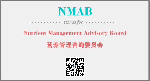 上述内容是“Nutrient Management Advisory Board”作为“NMAB”的缩写,解释为“营养管理咨询委员会”时的信息,以及英文缩略词NMAB所代表的英文单词,其对应的中文拼音、详细解释以及在英文中的流行度和相关分类、应用领域及应用示例等。