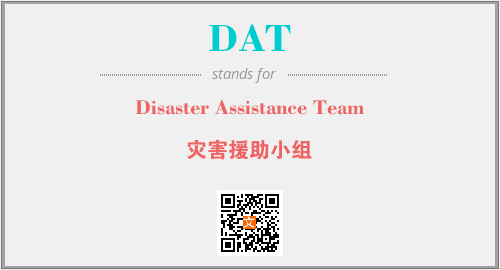 上述内容是“Disaster Assistance Team”作为“DAT”的缩写,解释为“灾害援助小组”时的信息,以及英文缩略词DAT所代表的英文单词,其对应的中文拼音、详细解释以及在英文中的流行度和相关分类、应用领域及应用示例等。