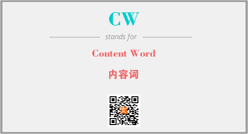 英文缩略词“CW”经常作为“Content Word”的英文缩写来使用,中文表示:“内容词”。本文将详细介绍英文缩写词CW所代表英文单词,其对应的中文拼音、详细解释以及在英语中的流行度。此外,还有关于缩略词CW的分类、应用领域及相关应用示例等。