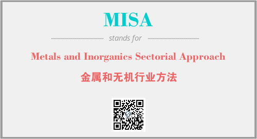 上述内容是“Metals and Inorganics Sectorial Approach”作为“MISA”的缩写,解释为“金属和无机行业方法”时的信息,以及英文缩略词MISA所代表的英文单词,其对应的中文拼音、详细解释以及在英文中的流行度和相关分类、应用领域及应用示例等。