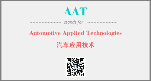 上述内容是“Automotive Applied Technologies”作为“AAT”的缩写,解释为“汽车应用技术”时的信息,以及英文缩略词AAT所代表的英文单词,其对应的中文拼音、详细解释以及在英文中的流行度和相关分类、应用领域及应用示例等。