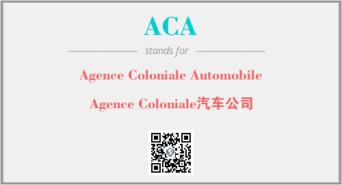 英文缩略词“ACA”经常作为“Agence Coloniale Automobile”的英文缩写来使用,中文表示:“Agence Coloniale汽车公司”。本文将详细介绍英文缩写词ACA所代表英文单词,其对应的中文拼音、详细解释以及在英语中的流行度。此外,还有关于缩略词ACA的分类、应用领域及相关应用示例等。
