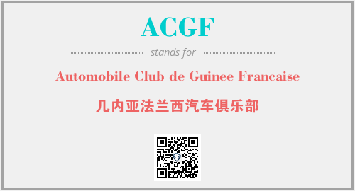 上述内容是“Automobile Club de Guinee Francaise”作为“ACGF”的缩写,解释为“几内亚法兰西汽车俱乐部”时的信息,以及英文缩略词ACGF所代表的英文单词,其对应的中文拼音、详细解释以及在英文中的流行度和相关分类、应用领域及应用示例等。