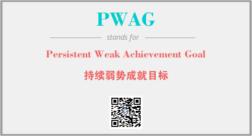 上述内容是“Persistent Weak Achievement Goal”作为“PWAG”的缩写,解释为“持续弱势成就目标”时的信息,以及英文缩略词PWAG所代表的英文单词,其对应的中文拼音、详细解释以及在英文中的流行度和相关分类、应用领域及应用示例等。