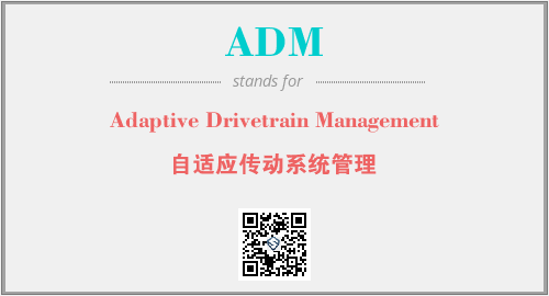 上述内容是“Adaptive Drivetrain Management”作为“ADM”的缩写,解释为“自适应传动系统管理”时的信息,以及英文缩略词ADM所代表的英文单词,其对应的中文拼音、详细解释以及在英文中的流行度和相关分类、应用领域及应用示例等。