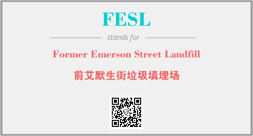 上述内容是“Former Emerson Street Landfill”作为“FESL”的缩写,解释为“前艾默生街垃圾填埋场”时的信息,以及英文缩略词FESL所代表的英文单词,其对应的中文拼音、详细解释以及在英文中的流行度和相关分类、应用领域及应用示例等。