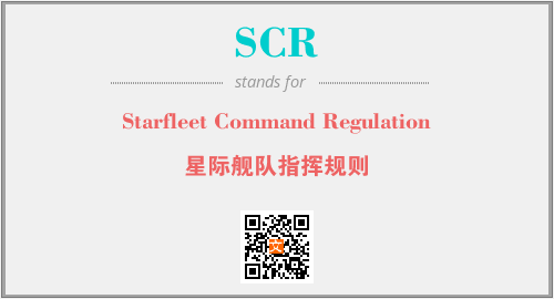 上述内容是“Starfleet Command Regulation”作为“SCR”的缩写,解释为“星际舰队指挥规则”时的信息,以及英文缩略词SCR所代表的英文单词,其对应的中文拼音、详细解释以及在英文中的流行度和相关分类、应用领域及应用示例等。