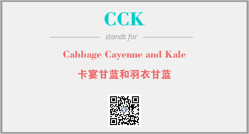 上述内容是“Cabbage Cayenne and Kale”作为“CCK”的缩写,解释为“卡宴甘蓝和羽衣甘蓝”时的信息,以及英文缩略词CCK所代表的英文单词,其对应的中文拼音、详细解释以及在英文中的流行度和相关分类、应用领域及应用示例等。