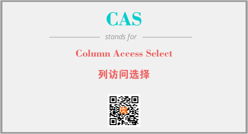 上述内容是“Column Access Select”作为“CAS”的缩写,解释为“列访问选择”时的信息,以及英文缩略词CAS所代表的英文单词,其对应的中文拼音、详细解释以及在英文中的流行度和相关分类、应用领域及应用示例等。