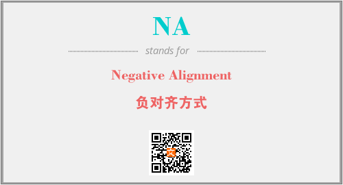 上述内容是“Negative Alignment”作为“NA”的缩写,解释为“负对齐方式”时的信息,以及英文缩略词NA所代表的英文单词,其对应的中文拼音、详细解释以及在英文中的流行度和相关分类、应用领域及应用示例等。