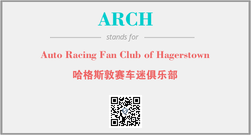 上述内容是“Auto Racing Fan Club of Hagerstown”作为“ARCH”的缩写,解释为“哈格斯敦赛车迷俱乐部”时的信息,以及英文缩略词ARCH所代表的英文单词,其对应的中文拼音、详细解释以及在英文中的流行度和相关分类、应用领域及应用示例等。