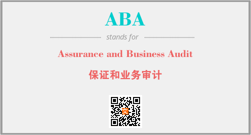 上述内容是“Assurance and Business Audit”作为“ABA”的缩写,解释为“保证和业务审计”时的信息,以及英文缩略词ABA所代表的英文单词,其对应的中文拼音、详细解释以及在英文中的流行度和相关分类、应用领域及应用示例等。
