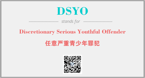 上述内容是“Discretionary Serious Youthful Offender”作为“DSYO”的缩写,解释为“任意严重青少年罪犯”时的信息,以及英文缩略词DSYO所代表的英文单词,其对应的中文拼音、详细解释以及在英文中的流行度和相关分类、应用领域及应用示例等。