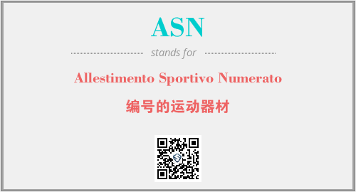 英文缩略词“ASN”经常作为“Allestimento Sportivo Numerato”的英文缩写来使用,中文表示:“编号的运动器材”。本文将详细介绍英文缩写词ASN所代表英文单词,其对应的中文拼音、详细解释以及在英语中的流行度。此外,还有关于缩略词ASN的分类、应用领域及相关应用示例等。