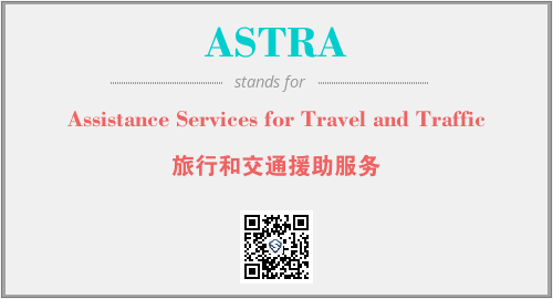 以上为Assistance Services for Travel and Traffic英文缩略词ASTRA的中文解释,以及该英文缩写在英语的流行度、分类和应用领域方面的信息。